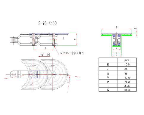 2.材質(zhì):鏈板材質(zhì):聚甲醛(POM),銷軸材質(zhì):冷軋奧氏體不銹鋼。