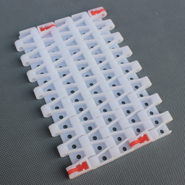 2.材質(zhì):網(wǎng)帶材質(zhì):聚甲醛(POM),銷軸材質(zhì):聚丙烯(PP)